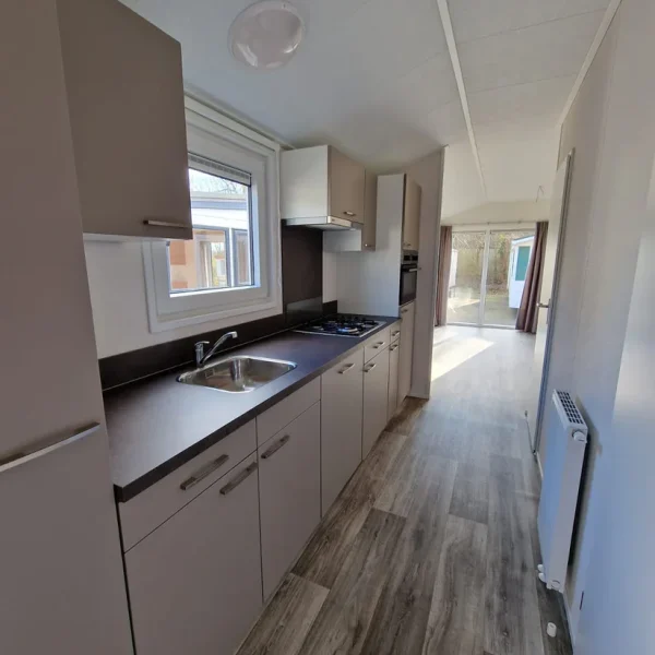 Marcos de plástico para puertas y ventanas, doble acristalamiento H++, rejillas de ventilación en las ventanas Unidad de cocina con muebles altos