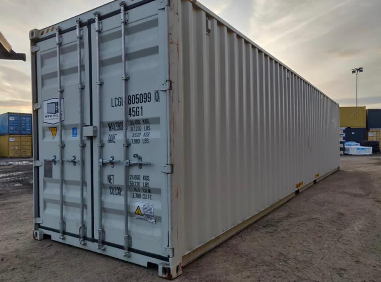 El contenedor de 40 pies tiene una capacidad en volumen de entre 60 y 67 metros cúbicos, una superficie de 27 metros cuadrados y un peso (tara) de unos 3.500/3.750 kg.