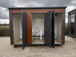 Aplicaciones: Este contenedor sanitario es perfecto para eventos, obras o cualquier otro lugar que requiera instalaciones sanitarias móviles. Su diseño robusto y su moderno equipamiento garantizan un confort óptimo para los usuarios.