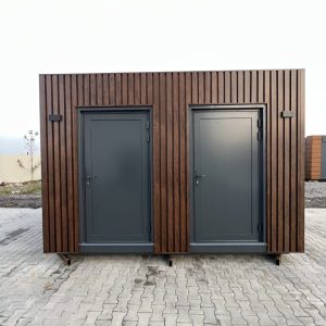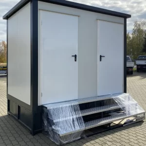 Cabina de aseo doble de 3×2 metros con depósito de residuos, inodoro y ducha