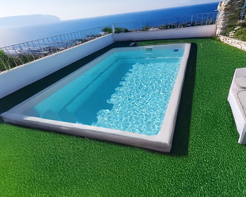 La piscina lleva de serie skimmer, toma para limpia fondos, impulsores y sumidero de fondo.