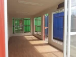 Tabiquería y entramado de madera de pino seco sin cepillar, en formato 2¨x1¨y 2¨x2¨Aislación térmica, Poliestireno expandido para muros y cielos de 30 mm de espesor.Revestimiento, se considera fibrocemento de 3,5 mm de espesorPiso, revestido con piso flotante de 7mm de espesor de alto tráfico.Sistema eléctrico; Según Normativa SEC. Alambre NYA, V-R-B de 2,5 mm para fuerza y de 1,5 mm para iluminación, embutidos en conduit de16mm Automático de 10 Amperes para iluminación y 16 Amperes para fuerza, Caja estanca exterior para empalme.Puntos eléctricos; 1 interruptor simple para los de 20 pies y doble para los de 40 pies. 2 y 4 enchufes respectivamente. Cuando la oficina considera Aire Acondicionado se agrega un enchufe simple y un automático de 16ASistema de Aire Acondicionado; Considera de 9.000 y 12.000 BTU respectivamente, en formato Split ventana y solo cuando el cliente lo requiere.Iluminación; Luminarias fluorescentes tipo canoa de 1×36 w. 2 en unidades de 20 pies y 4 en 40 pies.3 Ventanas comerciales de aluminio sin protecciones.Puerta de acceso, doble hoja de vidrio y manilla de seguridad.Pintura; Interior considera esmalte al agua en dos manos y Esmalte sintético en dos manos en el exterior, previo una mano de anticorrosivo. Colores exteriores, Gris o blanco.Sala de baño considera artefactos de línea Karson u otra símil. 1 Lavabo y 1 sanitario.Terminaciones; Molduras Finger de pino cepillado